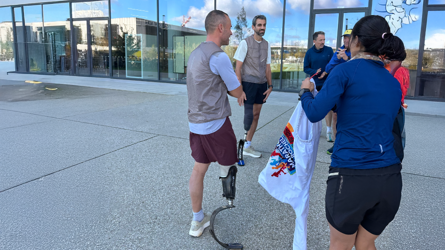 Le mardi, nous avons eu l’honneur d’accueillir Julien Veysseyre, para-athlète de la Team Salomon. Il est venu partager son histoire, son parcours sportif, et notamment sa préparation à l’UTMB 2026 après sa course de 100 km à l’HOKA UTMB Mont-Blanc 2025 – CCC. Un récit puissant, porté par la résilience, l’envie de dépasser ses limites et la force de se réinventer. Cette rencontre s’est conclue par une course conviviale de 5 km aux côtés des sportifs du bâtiment et de Christophe Debard, Head of Protospace Airbus et para-athlète de la Team Salomon.